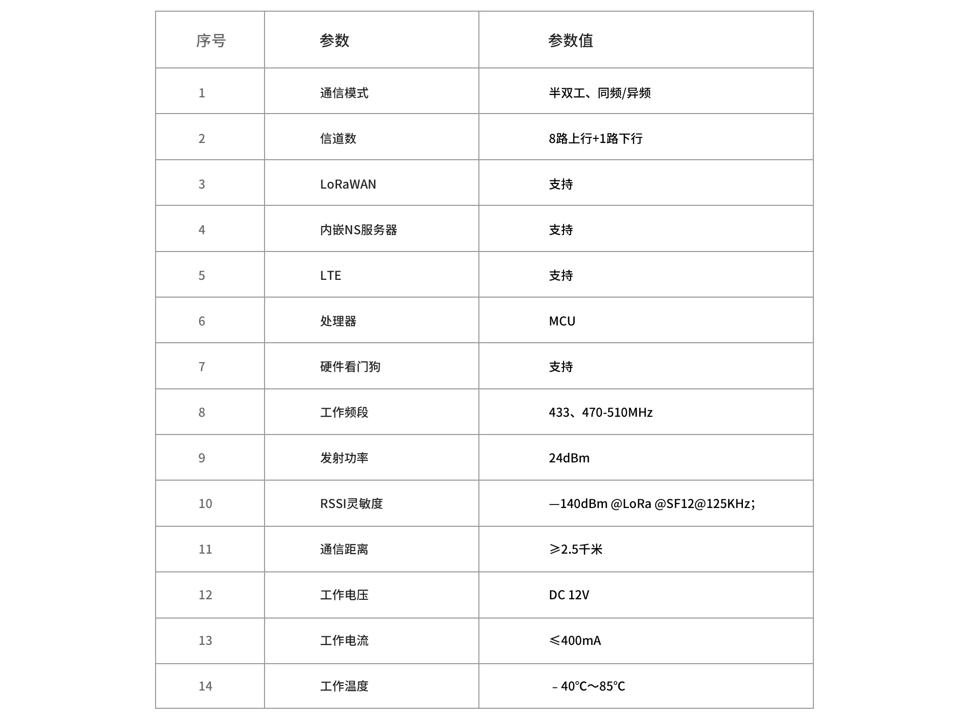 基于低功耗广域网LPWAN协议的室外网关,具有完全自主知识产权,支持标准LoRa(LoRaWAN)通信,支持4G,以太网双接口,也可根据用户要求进行定制开发。网关采用标准SX1301/1302射频芯片,支持8路上行,1路下行通信链路,具备内部运行状态监控和外部硬件 看门狗监控,可长期稳定运行。
